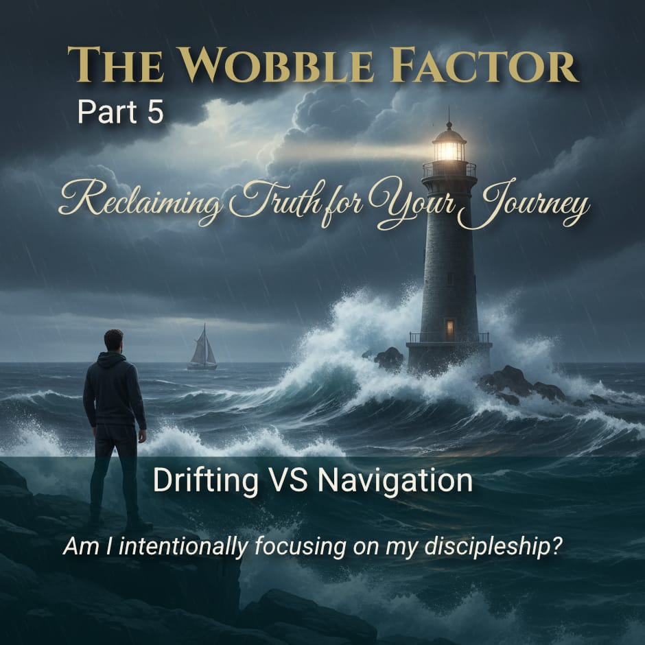 I began to recognize the difference somewhere along my discipleship journey. Wobble is characterized by awareness, intention, engagement, reference to fixed points, and course correction. I had none of these. I wasn't aware of where I actually was—I was telling myself comforting lies. I had no clear direction beyond surviving the week. I was passive, reactive, carried by whatever current was strongest. My reference points had disappeared—Scripture, community, prayer, all eroded. And when I noticed I was off course, I justified it rather than correcting it.